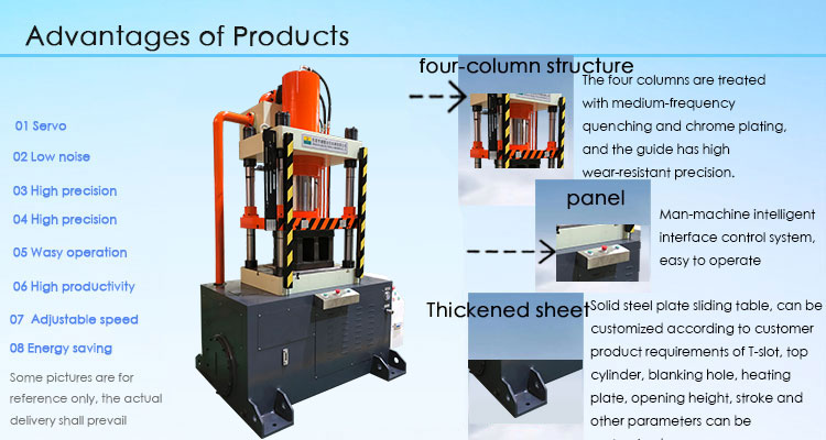 The company is proficient in all kinds of hydraulic machinery design, manufacturing, sales and other services, the main products are:  Servo multi-direction (3D) forging press, servo four-column double action tension hydraulic press, servo jigsaw hydraulic press, servo four-column hydraulic press, servo cold forging machine, servo hot press, servo die casting edge cutting machine, servo frame hydraulic press, servo sheet metal shaping hydraulic press, servo bow (C) shape machine, hydraulic press press and other hydraulic equipment.
